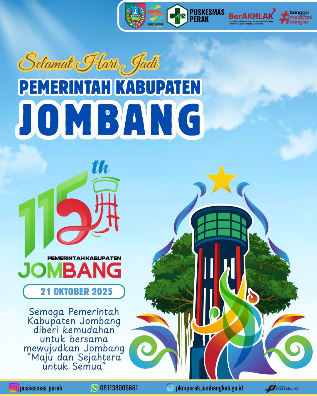 Selamat Hari Jadi Pemerintah Kabupaten Jombang ke-115 tahun 21 Oktober 1910 - 21 Oktober 2025.