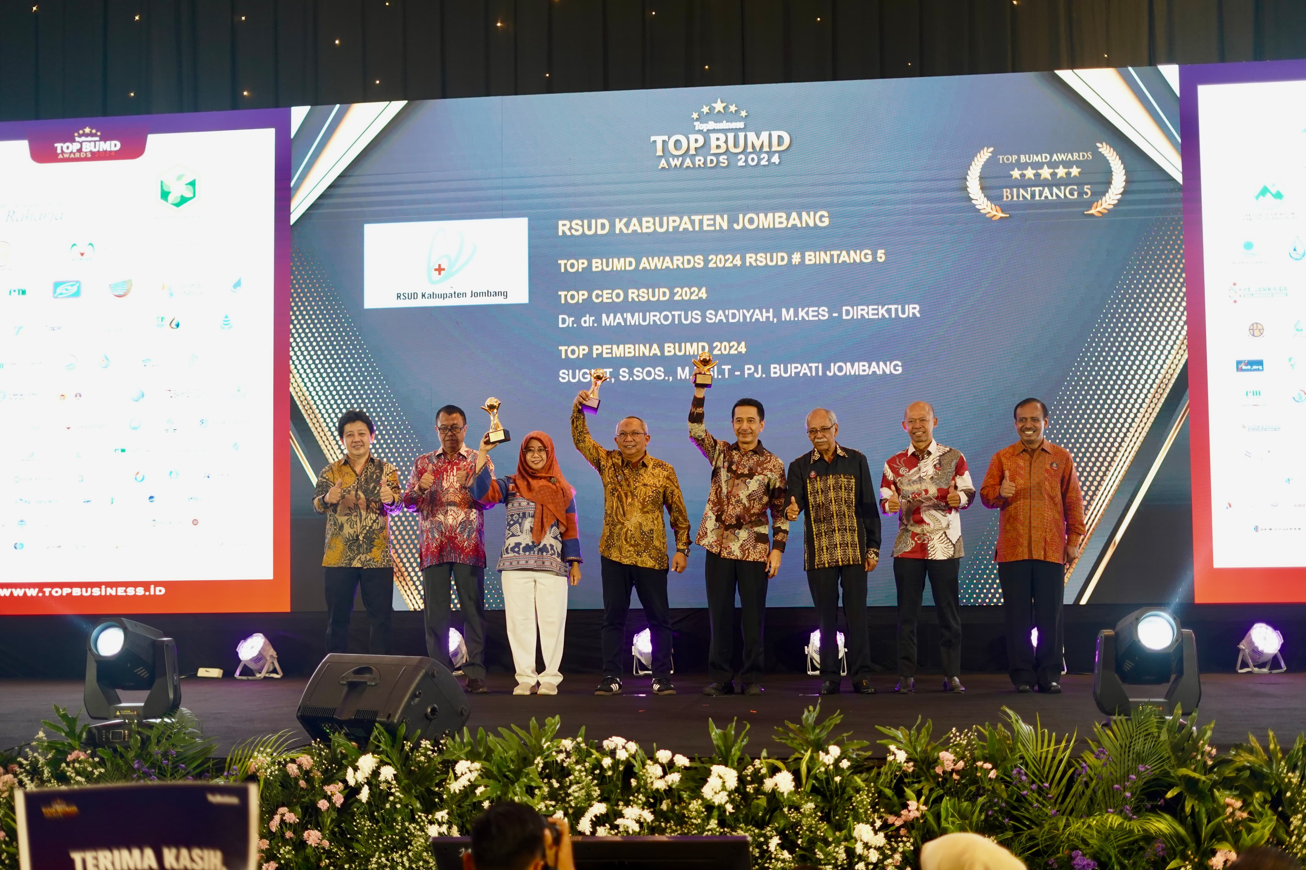 Pada ajang penghargaan tingkat nasional tersebut, Tiga BUMD di Kabupaten Jombang berhasil meraih TOP BUMD Awards # bintang 4 dan # bintang 5. Sedangkan Pj. Bupati Jombang juga berhasil meraih Top Pembina BUMD Awards 2024.